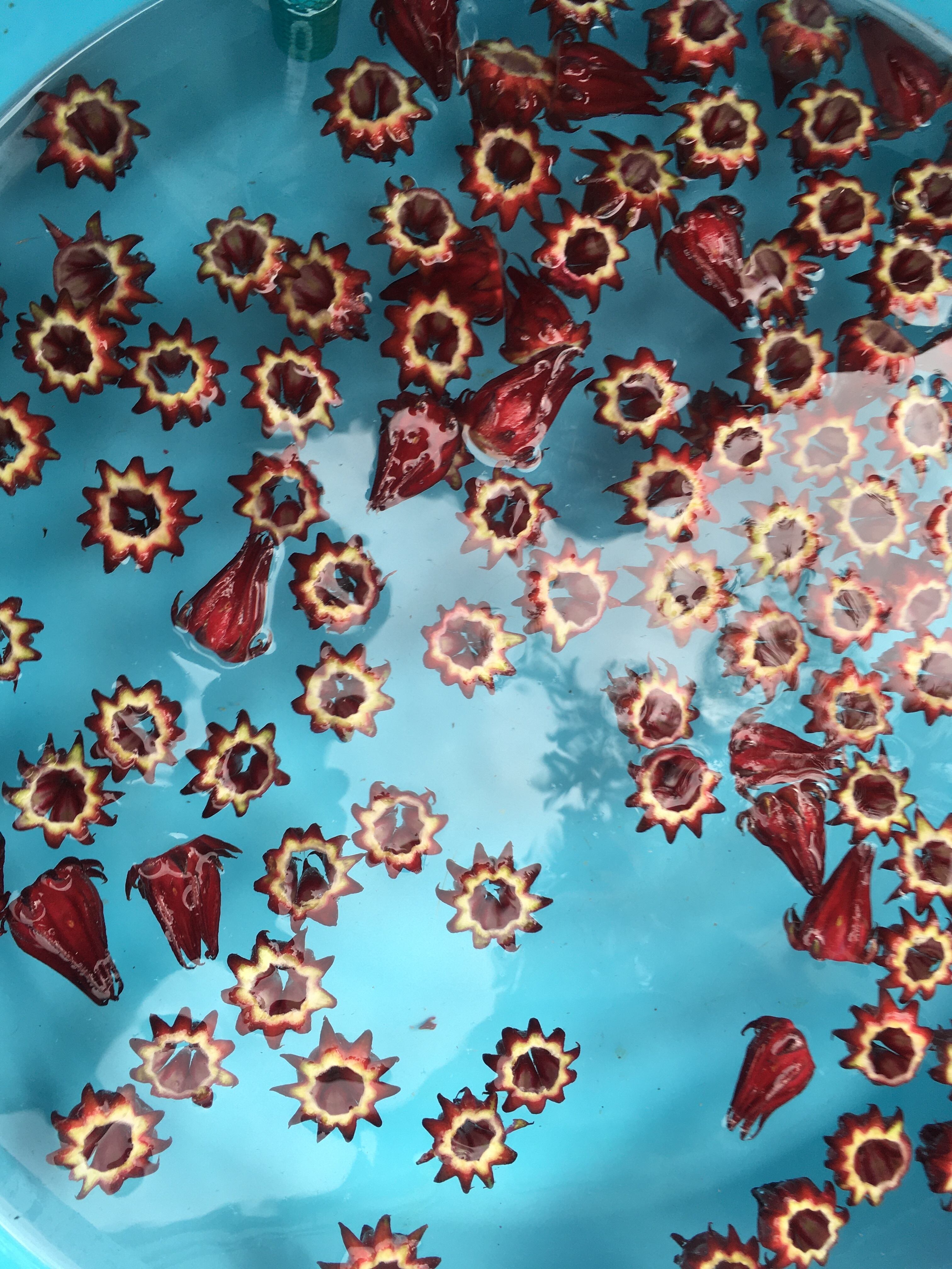 ハイビスカスティとして使用される果実ですが、生のローゼルを塩漬けにするのも大変おすすめです。ポリフェノールやクエン酸を含有しているので酸っぱく、蜂蜜などに浸して食べてもおいしいです。