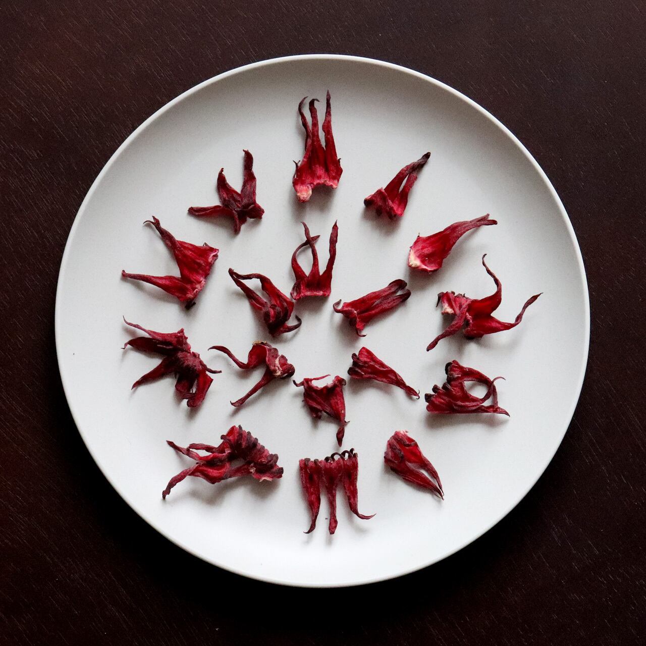 ハイビスカスティに欠かせないローゼル(食用ハイビスカス)です。乾燥器で乾燥させているので天日干しのものより色が鮮やかだと思います。