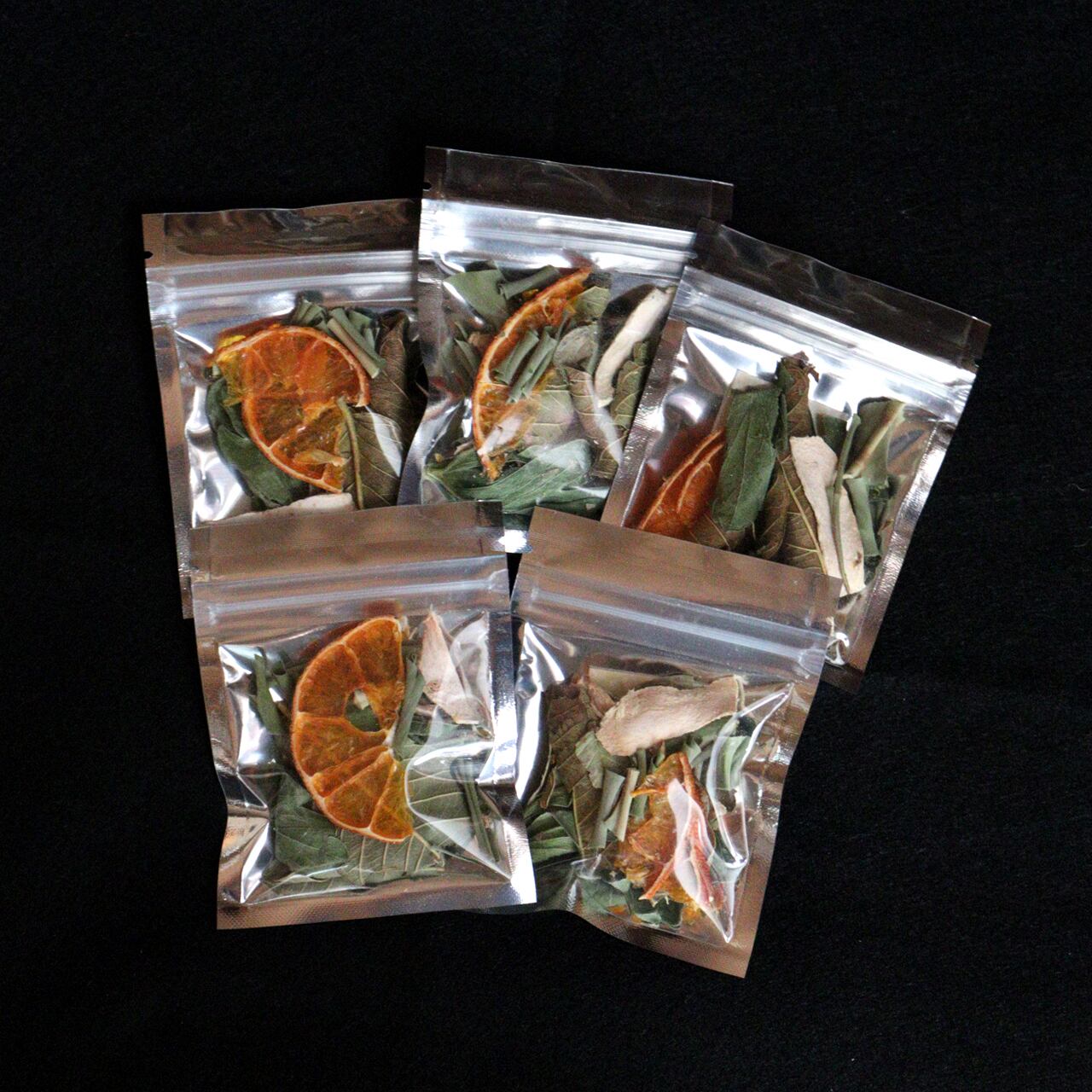 ドライたんかん、月桃、グァバ葉、ボタンボウフウ(長命草)、南姜(カー、ガランガル)をミックス。